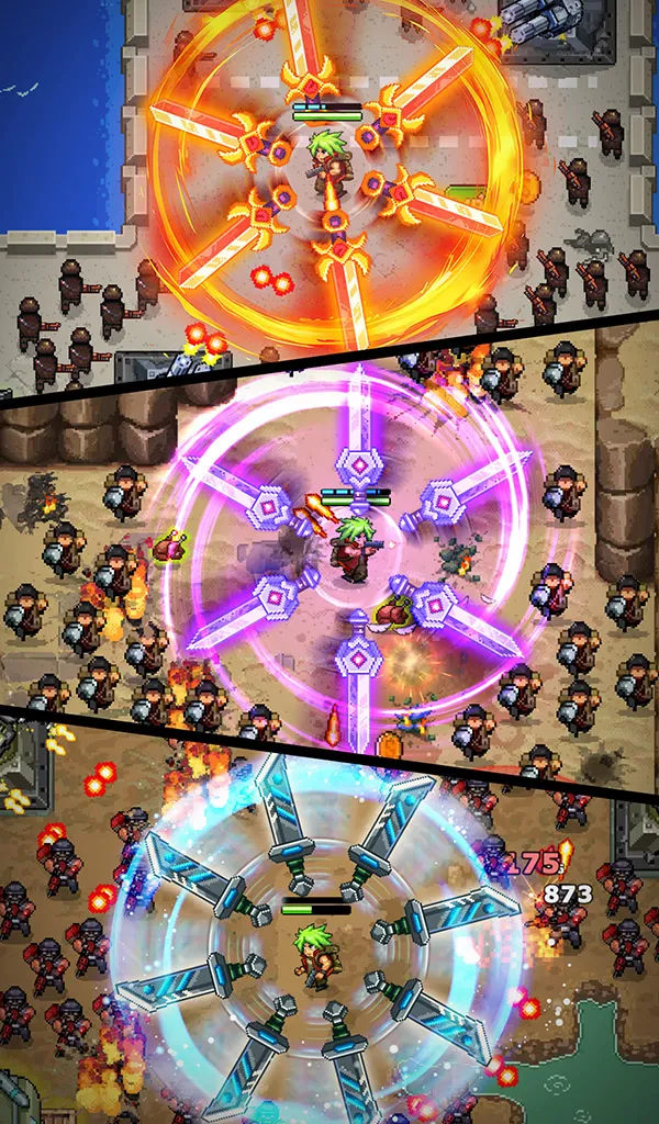 Immerse yourself in fierce battles with childhood pixel graphics as the ultimate commander of the legion. The battlefield is engulfed in flames and chaos, your mission is to help the hero survive, defeat enemies, gain experience and continuously upgrade your abilities to become the ultimate hero!